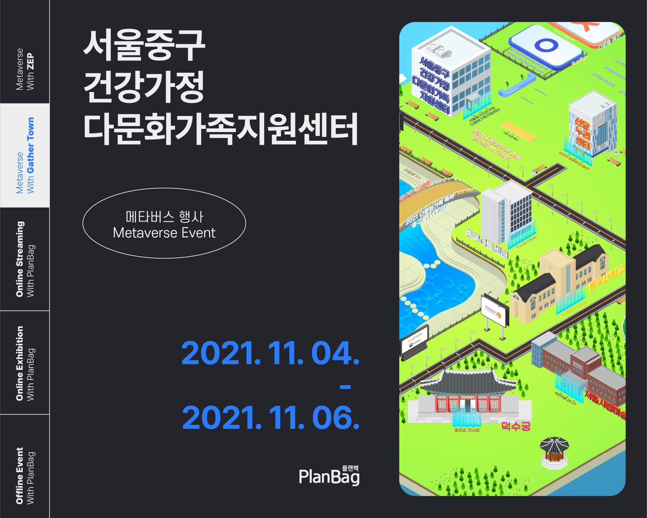 #메타버스 #게더타운 #비대면행사 #중구건강가정다문화가족지원센터 #매타버스 #개더타운 #온라인행사 #온라인축제 #네트워크 #플랜백 #행사 #2021 #미래교육 #축제 #중구 #건강가정·다문화가족지원센터 #다문화가족축제
