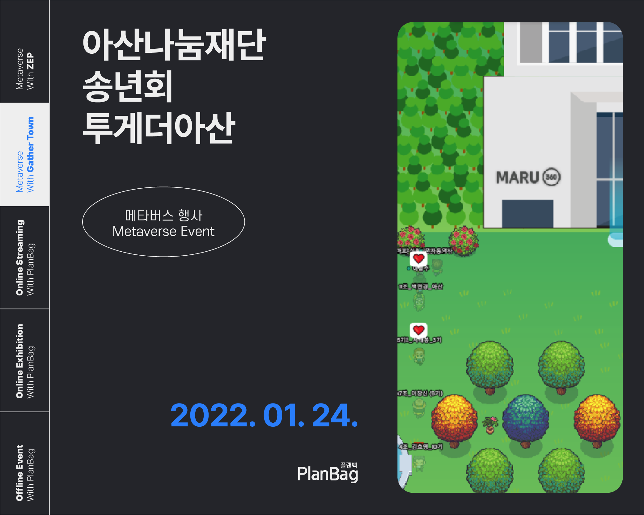 #메타버스 #게더타운 #비대면행사 #비대면송년회 #매타버스 #개더타운 #온라인행사 #온라인송년회 #온라인미팅 #네트워크 #플랜백 #행사 #아산나눔재단 #송년회 #투게더아산